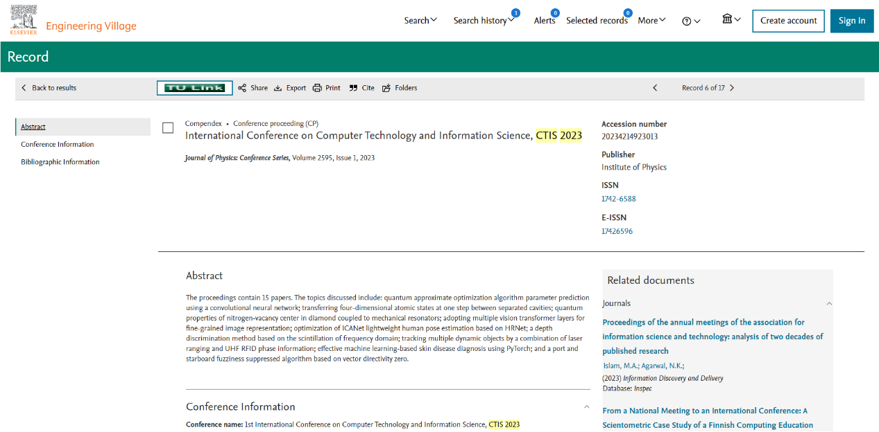 2023-10-27 CTIS 2023 conference proceedings has been published by Journal of Physics: Conference Series and indexed by EI Compendex, Scopus.